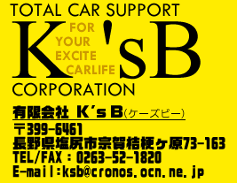 ◆ようこそK's B(ケーズビー)のホームページへ。わが社は、車の修理・板金・塗装、オリジナルのパーツ製作、ドレスアップ、チューニングから果てはトータルプロデュースまで車に関することでしたらなんでも行います。ぜひ一度ご覧になってください。